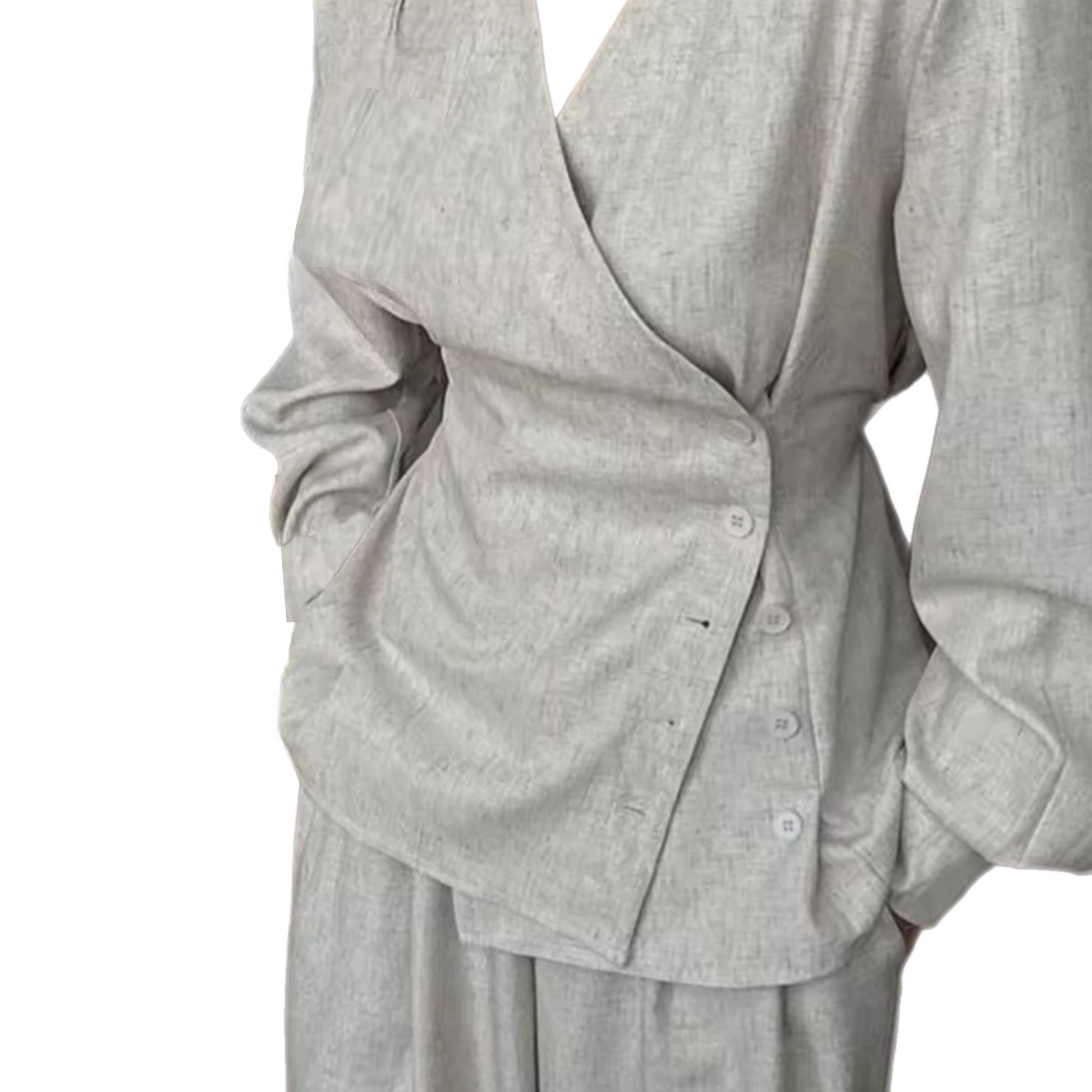 - Design raffiné : Chemise à col en V avec boutons délicats, manches longues pour un style élégant et polyvalent.