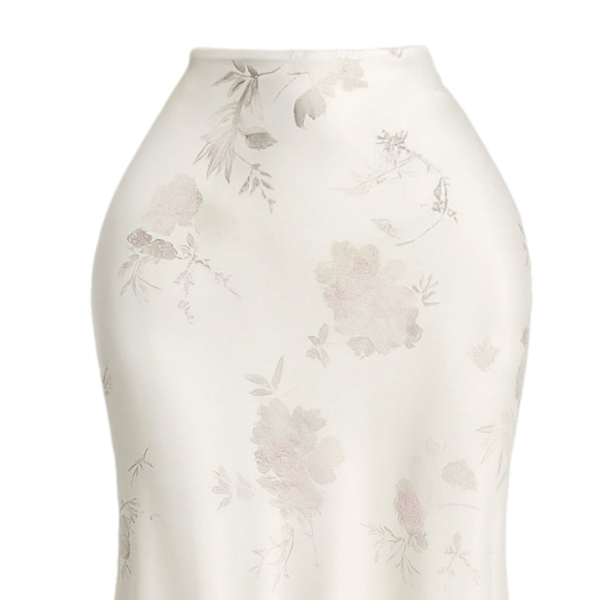 Sublimez votre style avec cette jupe longue en satin floral, une pièce intemporelle qui allie élégance et raffinement. Son tissu satiné fluide épouse délicatement la silhouette, offrant un tombé léger et gracieux.