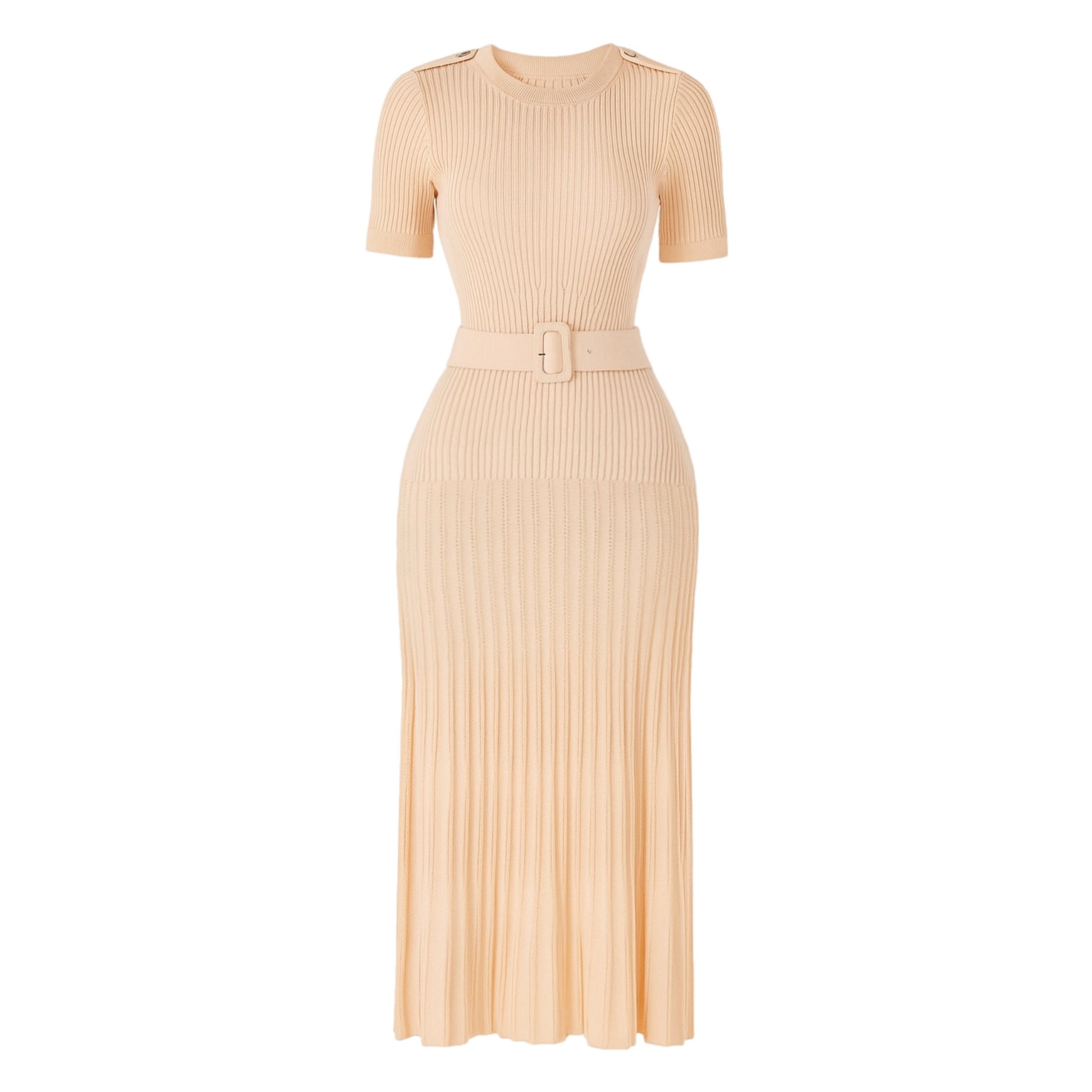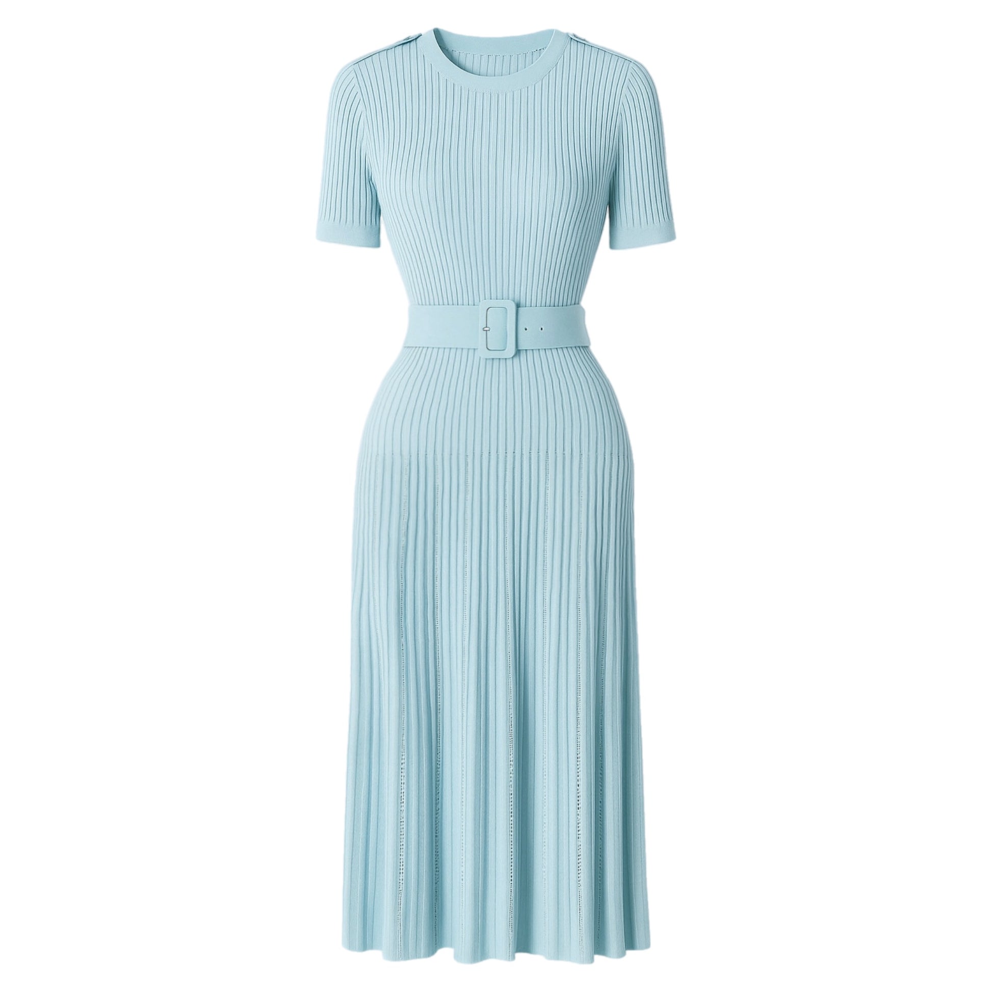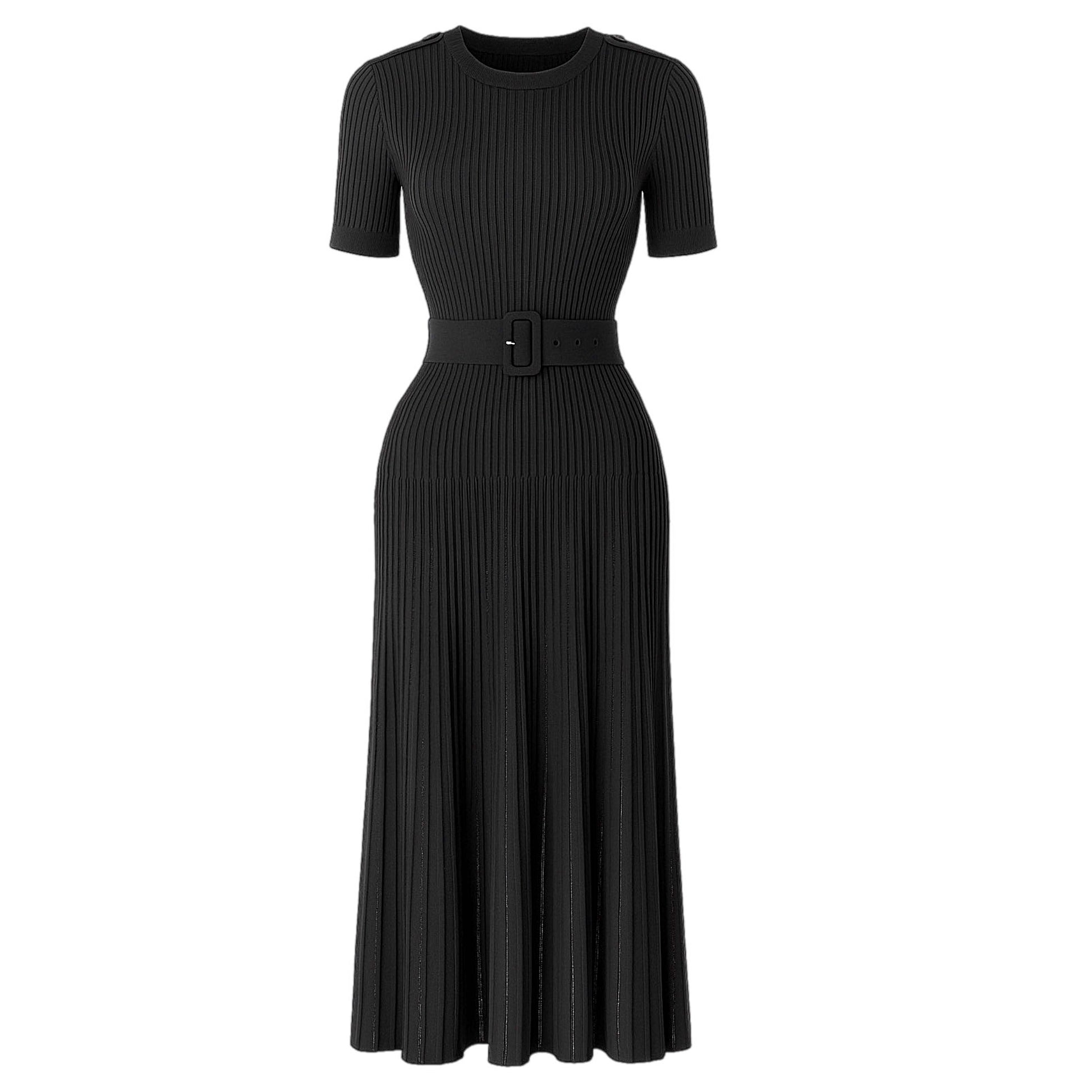 Robe tricotée cintrée à ceinture – Élégance & Modernité