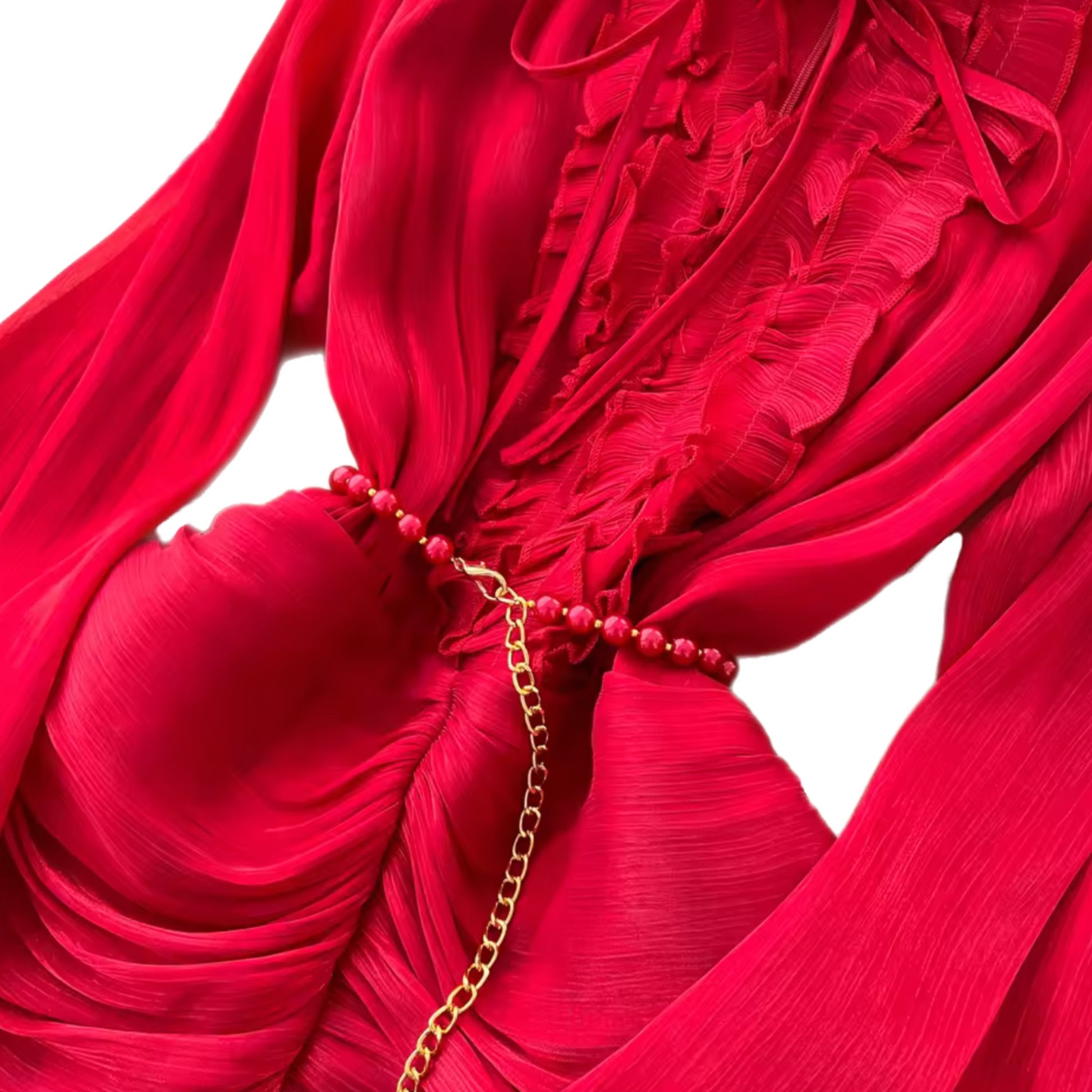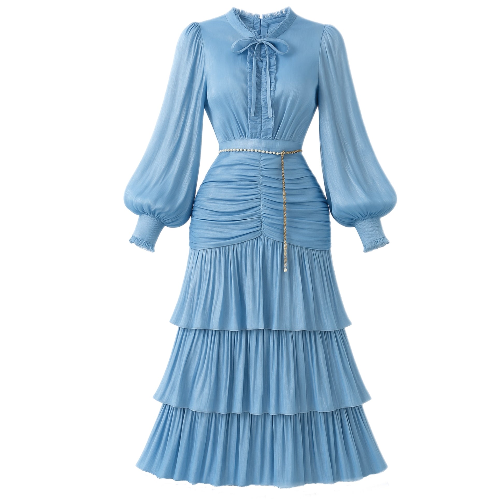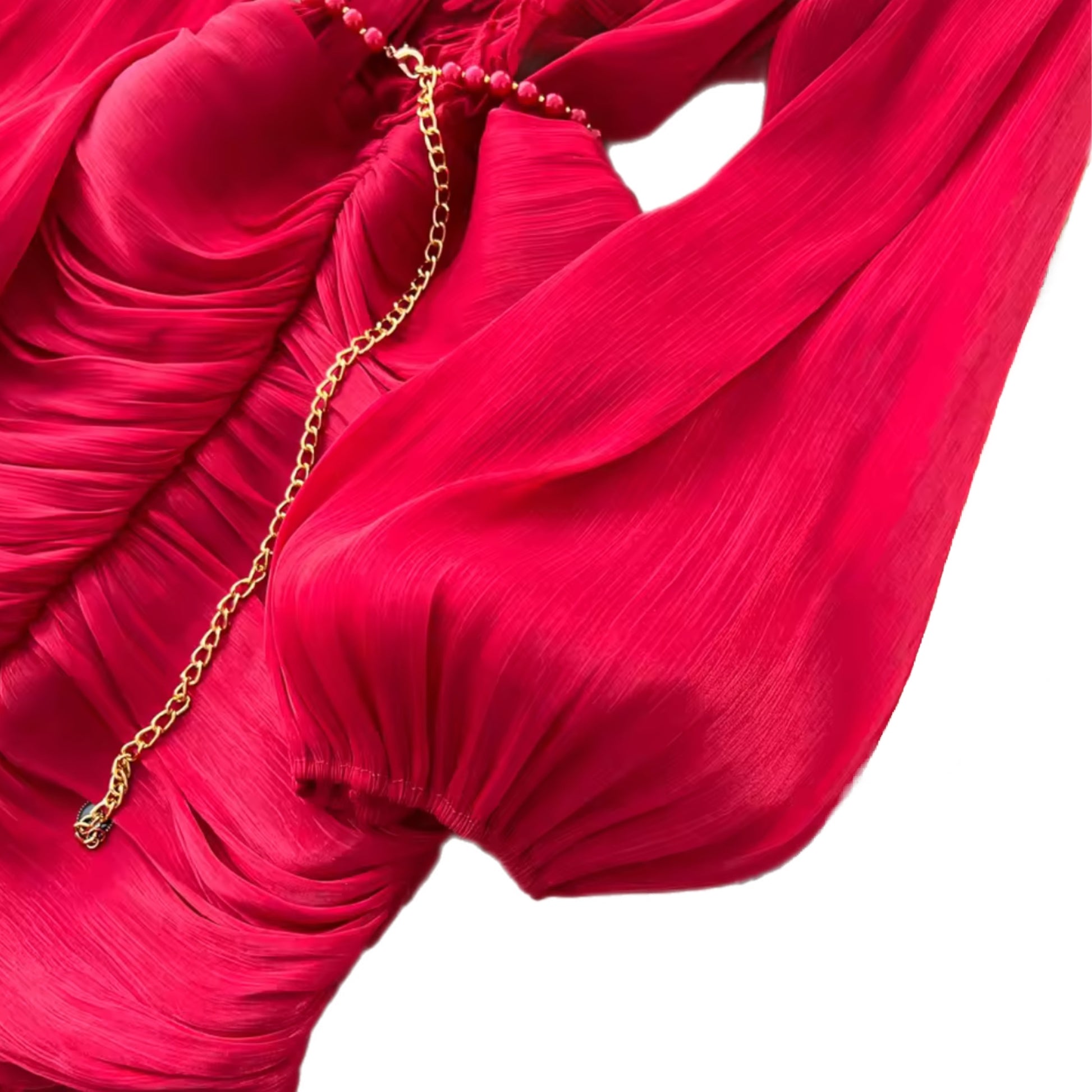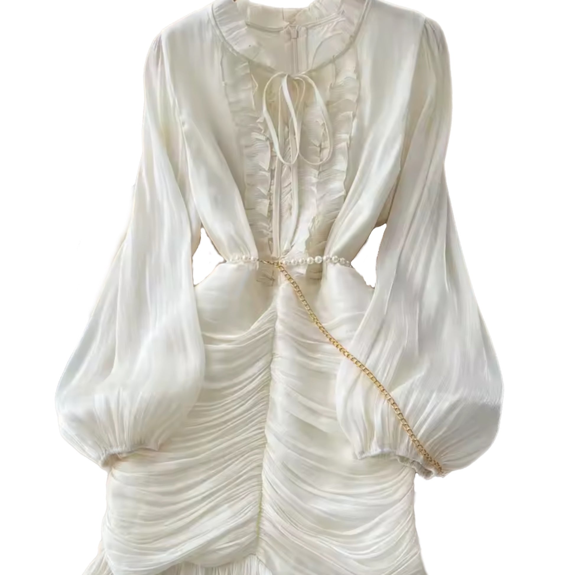 Apportez une touche de glamour à vos soirées avec cette robe longue sirène en satin fluide . Ses volants superposés, ses manches longues bouffantes et sa coupe queue de poisson mettent en valeur la silhouette tout en offrant un style raffiné et tendance.
