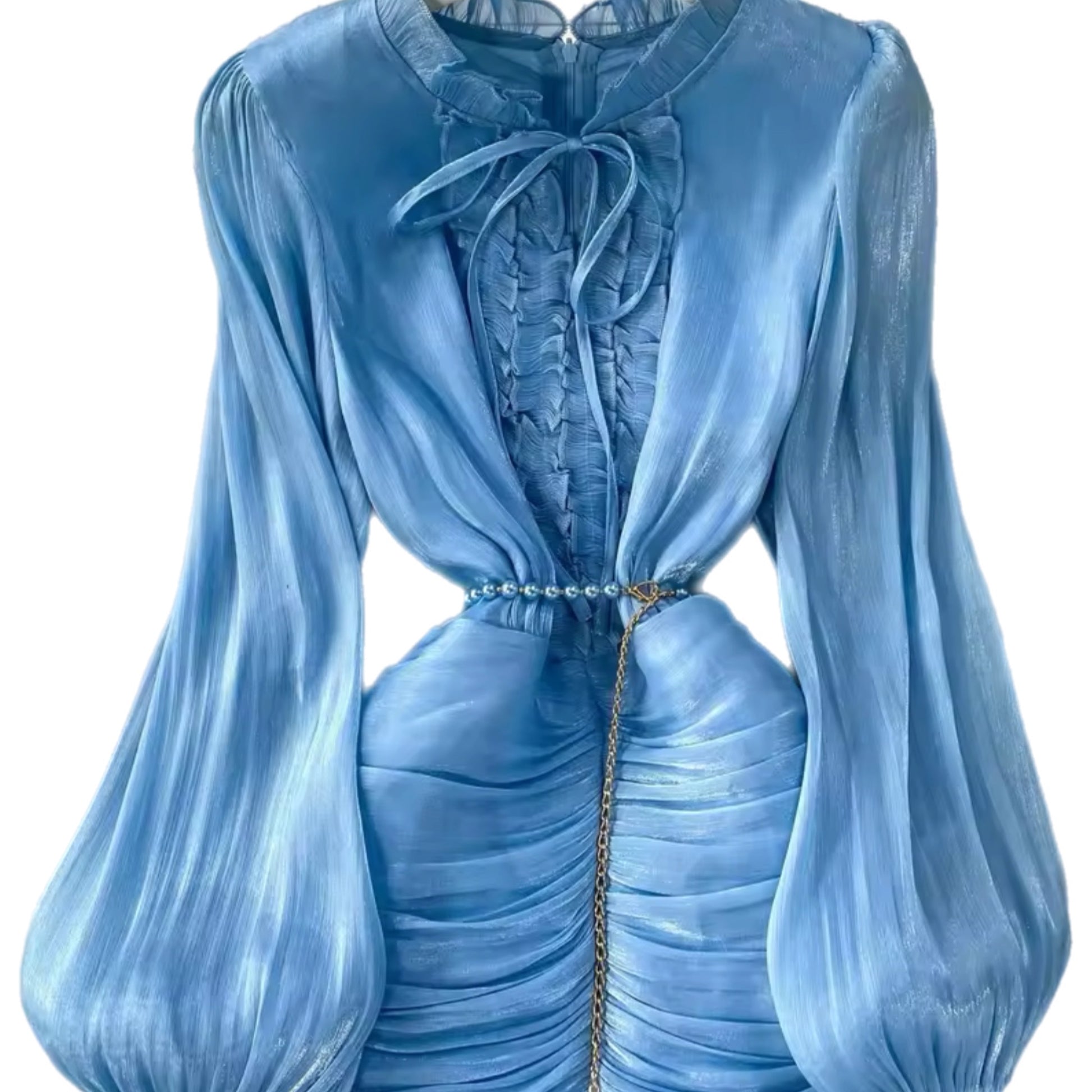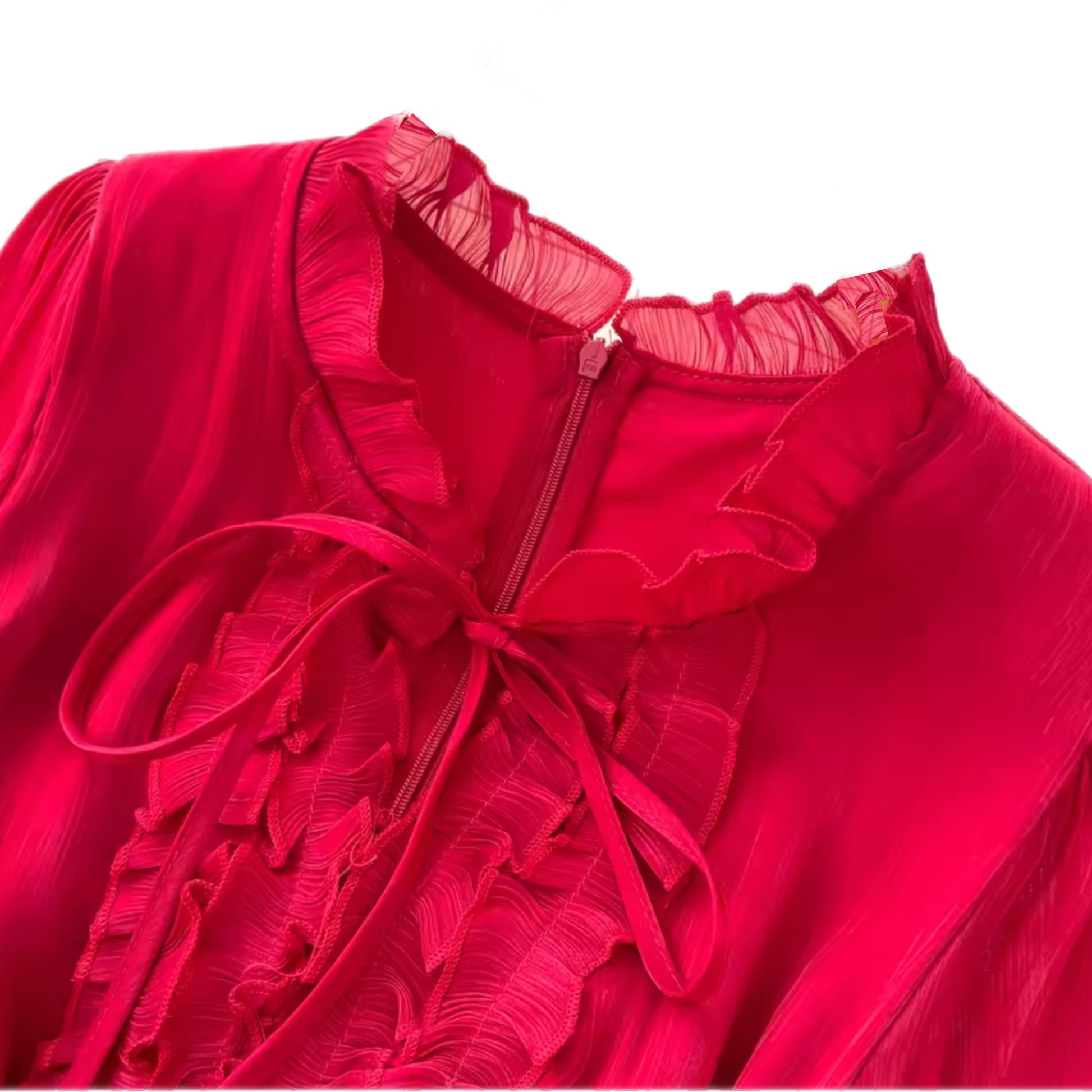 - Design sophistiqué : corsage ajusté, manches bouffantes, encolure élégante