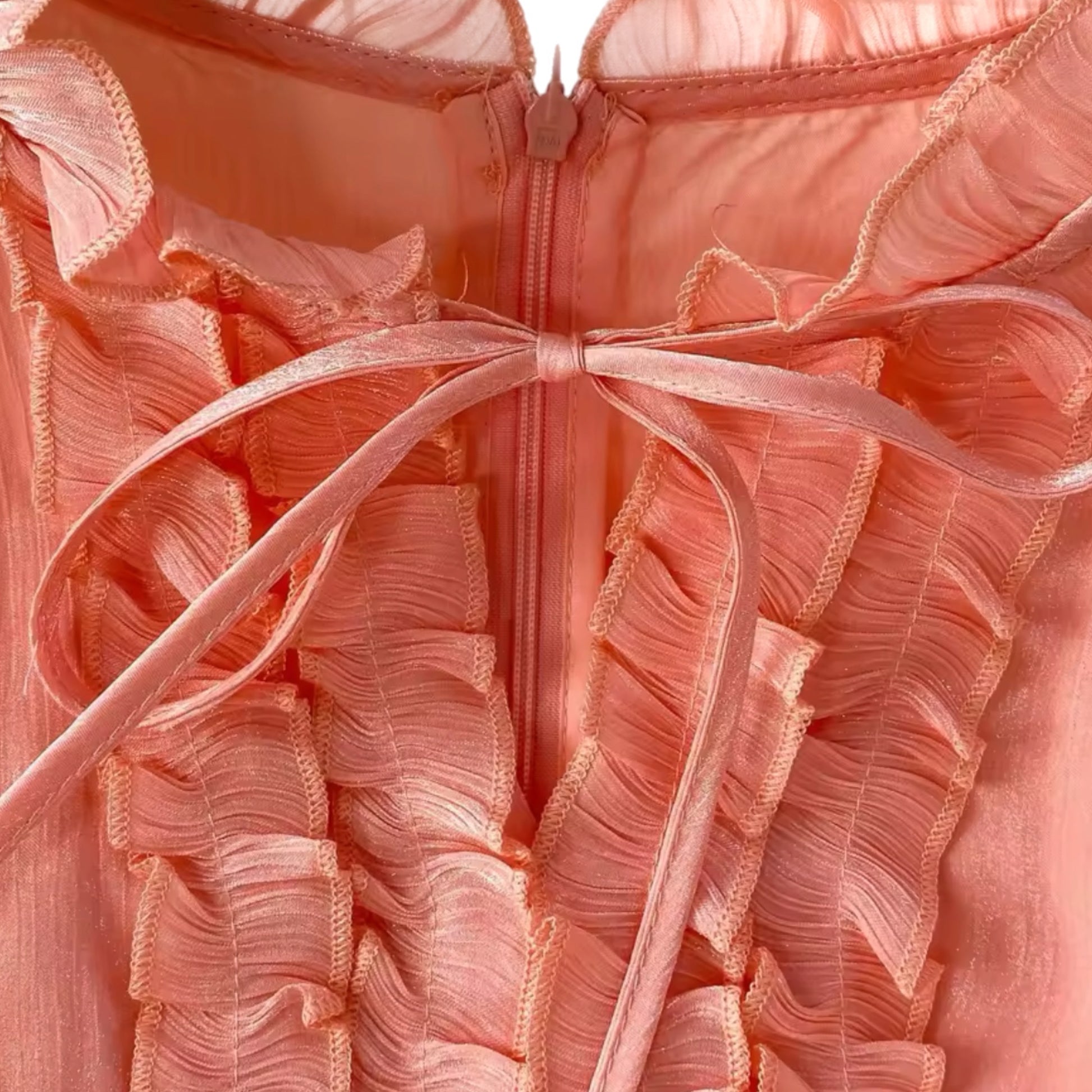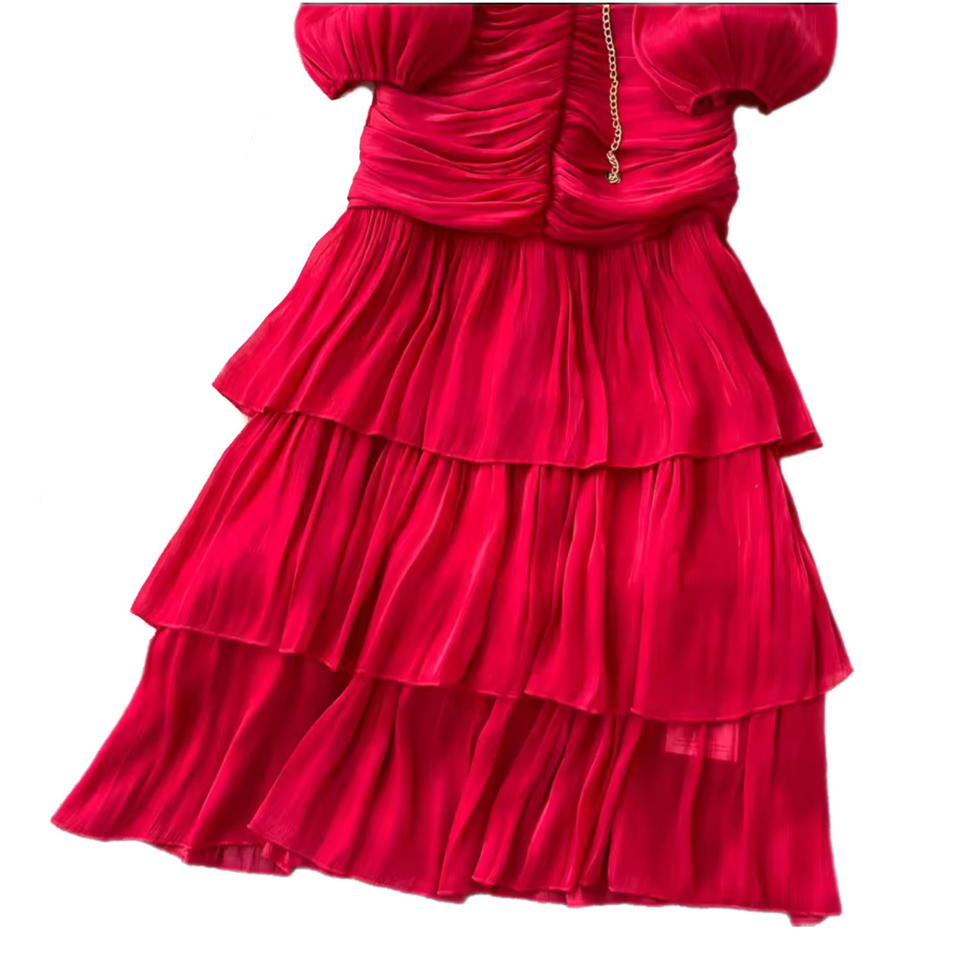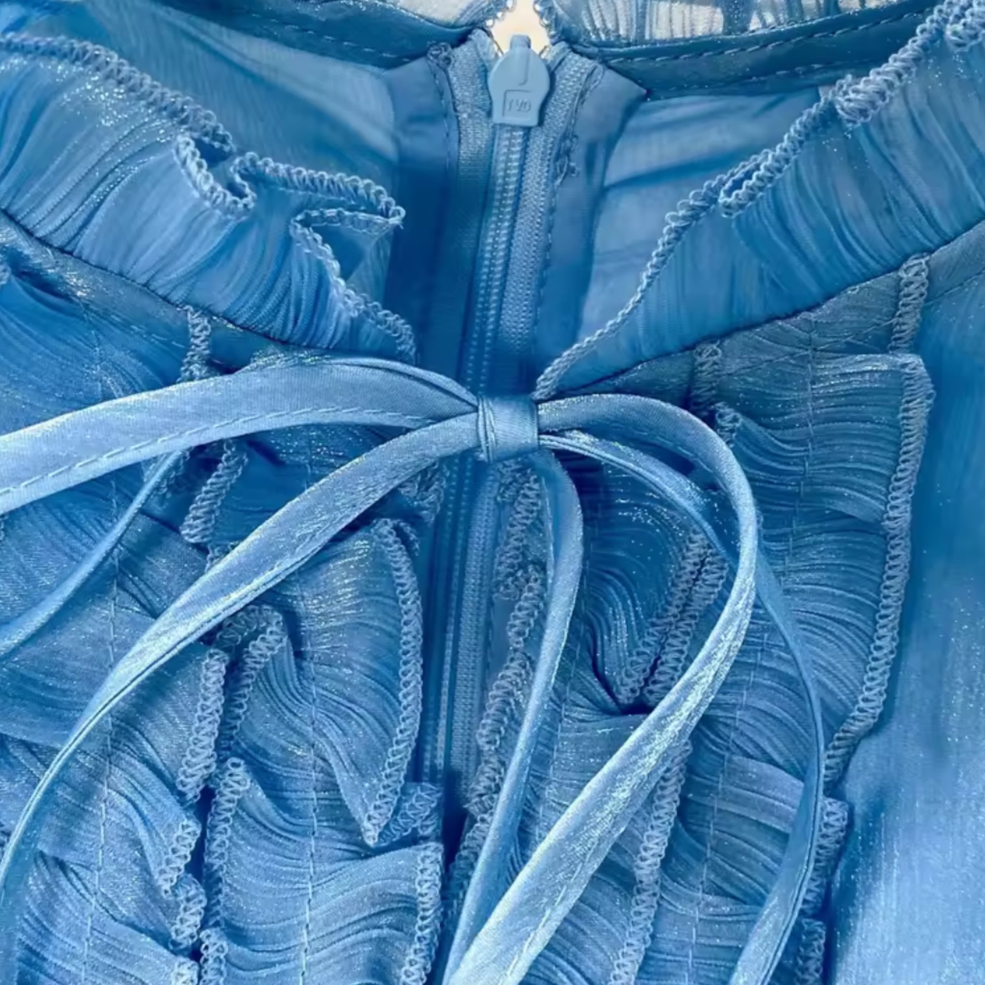 - Effet couture : volants superposés pour un tombé fluide et aérien