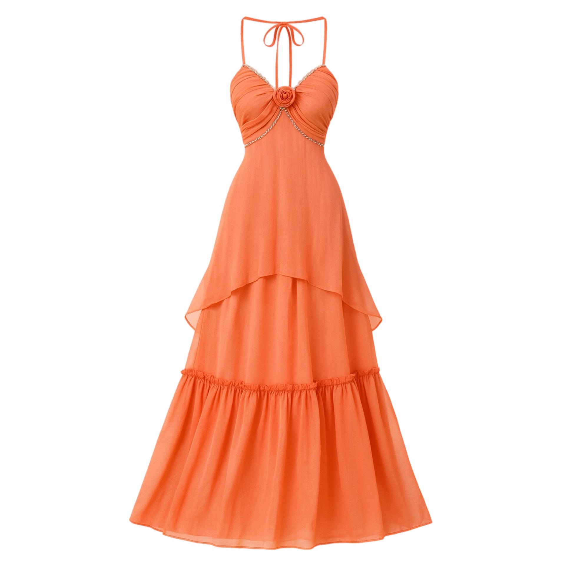 Une robe d’été légère et féminine qui sublime la silhouette grâce à sa coupe licou et ses volants floraux 3D. Son tissu fluide et sa finition raffinée en font une pièce idéale pour vos vacances, soirées ou sorties estivales.