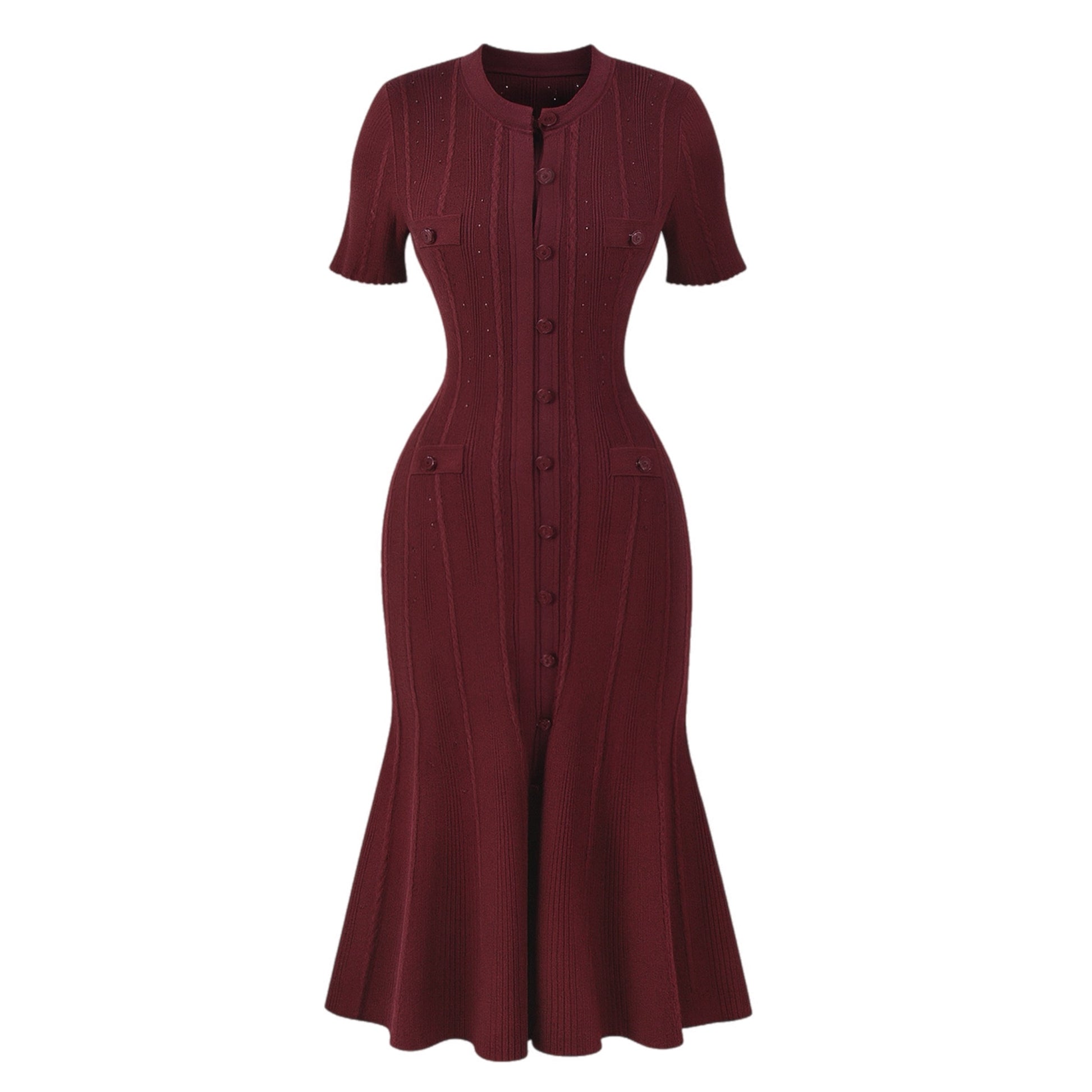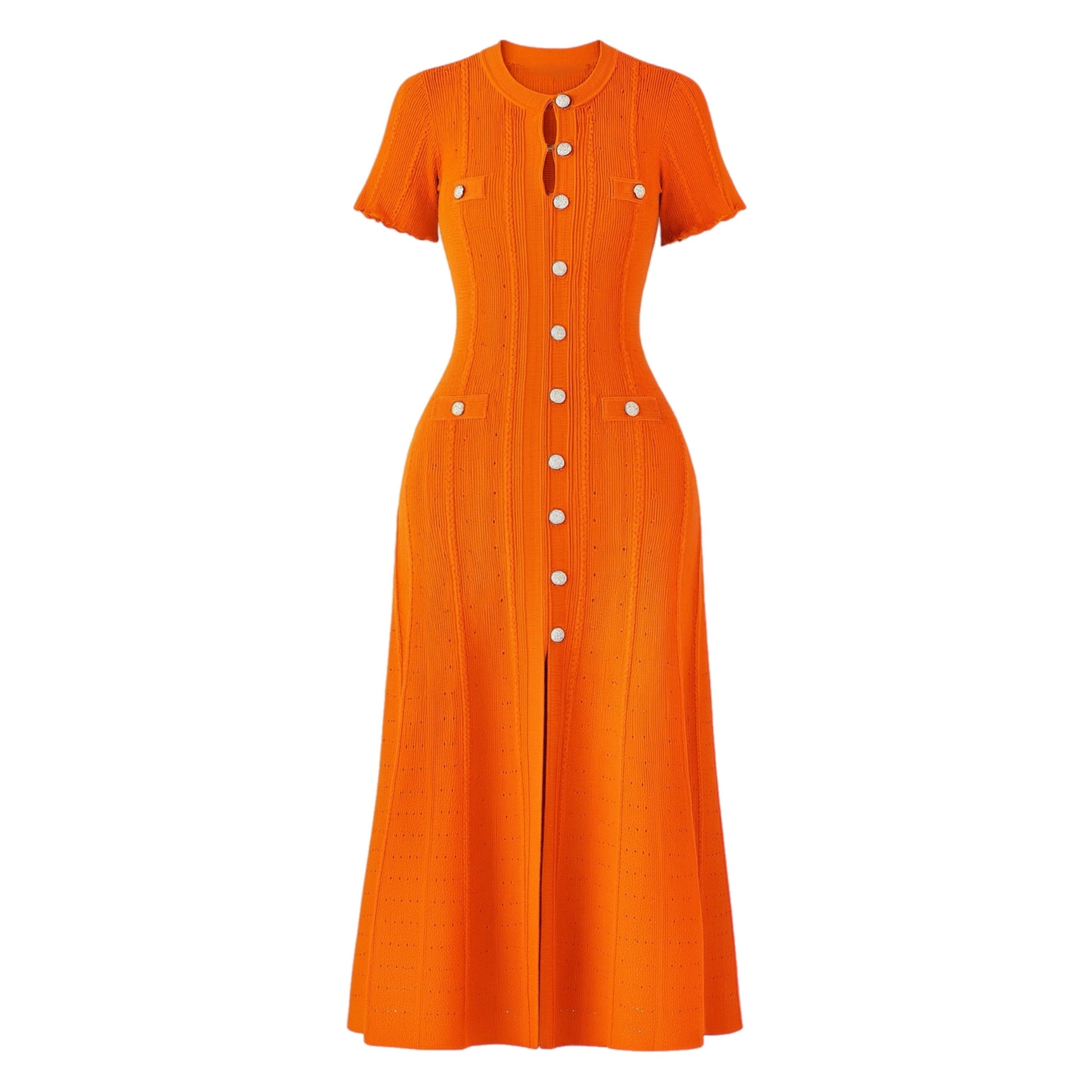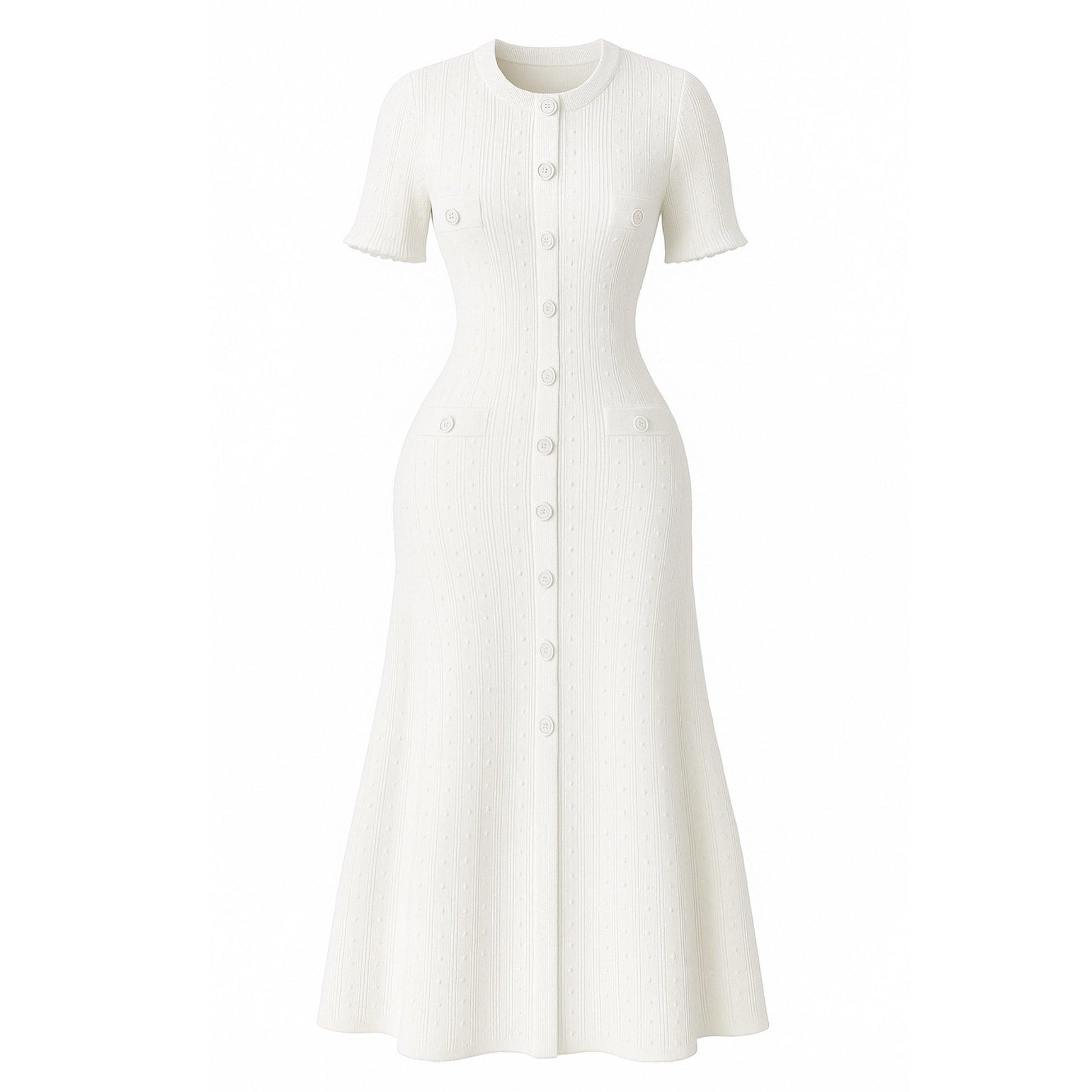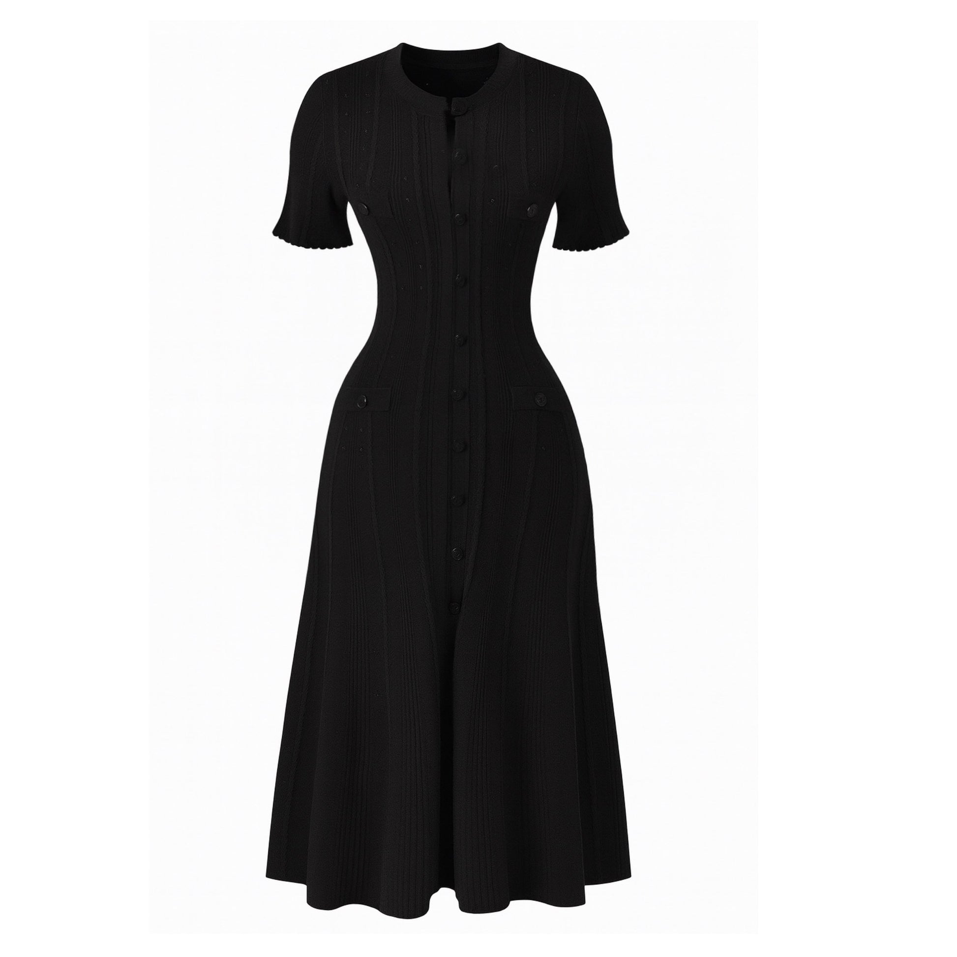 Optez pour un look chic et raffiné avec cette robe longue en maille tricotée ✨. Dotée d’un col rond classique, de manches courtes et d’une fermeture à boutons sur toute la longueur, elle incarne l’élégance minimaliste et moderne.