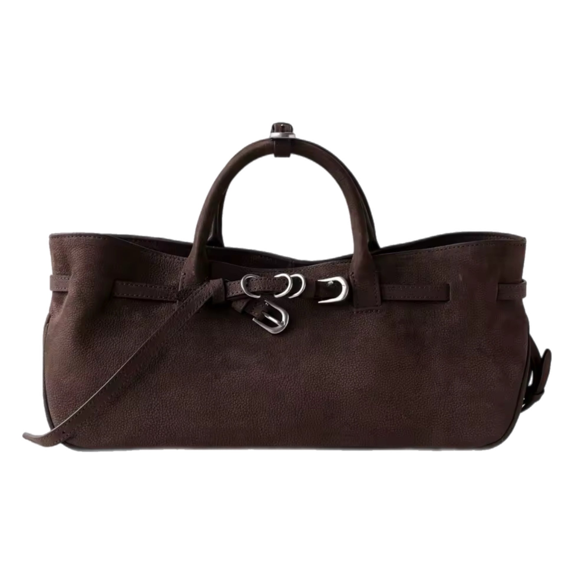 Ce fourre-tout en cuir de vache véritable au fini daim givré incarne l’élégance moderne avec une touche rétro. Sa couleur café-gris subtile et sa forme tote souple en font un sac de choix pour l’automne et l’hiver. Conçu pour être à la fois résistant à l’usure et raffiné, il se porte facilement à l’épaule ou en bandoulière grâce à sa sangle unique de 110 cm.
